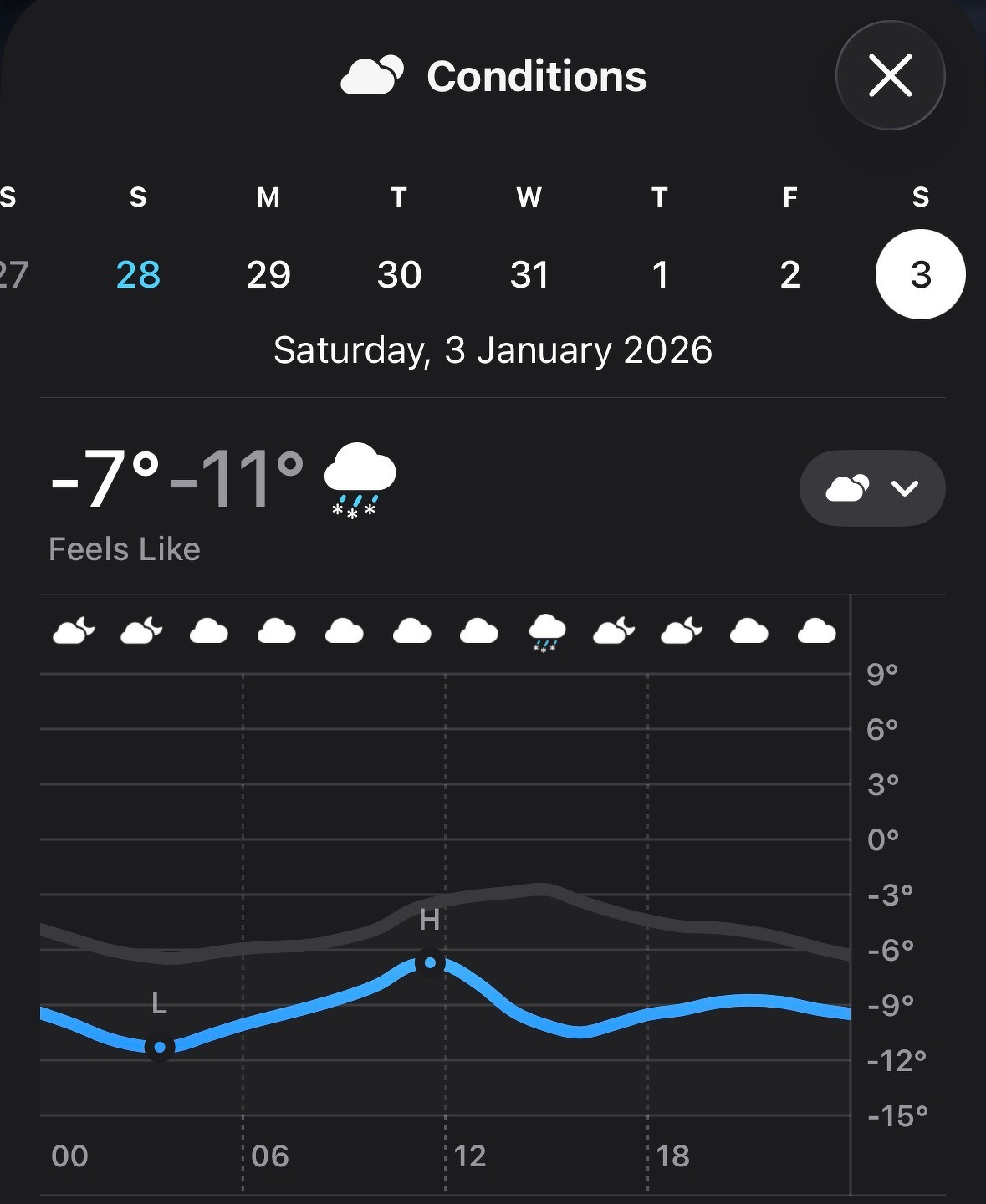 Snow forecast. My favourite condition for driving a motorhome in!